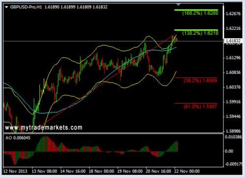 Валютная пара GBPUSD раскачалась в прошедшие дни и направилась вверх. Предварительно можно сделать вывод, что рост может продолжиться до 1,6280, если пара не снизится ниже 1,6175. Можно попробовать совершить покупки от 1,6175/85 с коротким стопом, с целями 1,6220 и 1,6280.