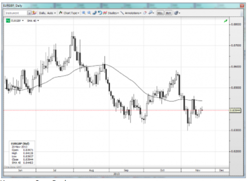 Позже выйдет протокол заседания Федерального комитета по открытым рынкам (FOMC), и рынок попытается определить настрой членов комитета при обсуждении сокращения объема покупок активов на их октябрьском заседании. Мы видели несколько откровенно намекающих на ужесточение или, по крайней мере, позитивных комментариев от пары известных сторонников ослабления. В начале недели Уильям Дадли высказался достаточно оптимистично в отношении американской экономики, а известный сторонник ослабления, Чарльз Эванс из ФРБ Чикаго, отметил в октябре, что сокращение имеет не такое большое значение по сравнению со всем объемом ослабления, который имел место к настоящему времени. Тем не менее, вчера Эванс отметил, что, по его мнению, Федрезерв остановит покупки в рамках программы QE3 при достижении суммы в 1,5 трлн. долларов. Ранее предыдущая оценка в октябре предполагала неправдоподобную сумму в 1,25 трлн. долларов, что означало бы чрезвычайно быстрое завершение программы QE после марта следующего года.