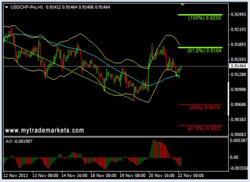 Валютная пара USDCHF выполнила условие для продаж. Первая цель была достигнута. Если при достижении первой цели был установлен стоп в безубыток, тогда сделку закрыло по нему. Если стоп не был перенесен, то вторая цель также была достигнута. Держим продажи от 0,9130 с целью 0,9030.