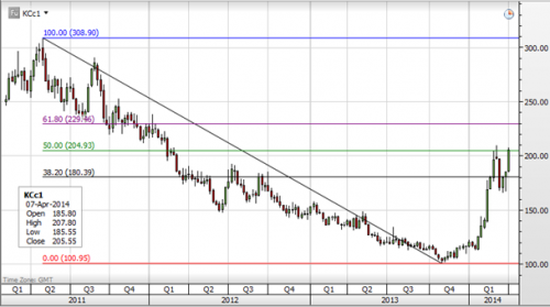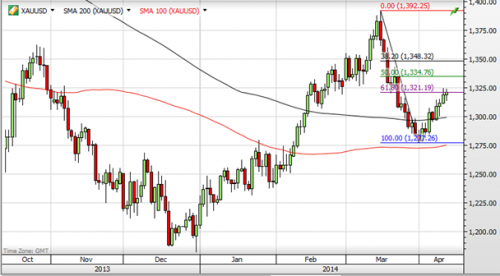 Поводов для роста цены на золото по-прежнему немного, хотя резкий скачок на 32 доллара, который произошел 24 апреля, отчетливо свидетельствует о том, что, хотя длинные позиции сейчас сокращаются, геополитические волнения, связанные с ситуацией на Украине, останавливают многих от активных продаж в настоящий момент. Серебро прошло область поддержки, проходящую по линии тренда на уровне 19,30, и ликвидировало все достижения этого года. Однако устойчивый интерес к покупке, возникший ниже этой отметки, привел к стремительному восстановлению. В результате ценовая разница с золотом сократилась до 67, самого низкого для серебра уровня с августа 2013 года.